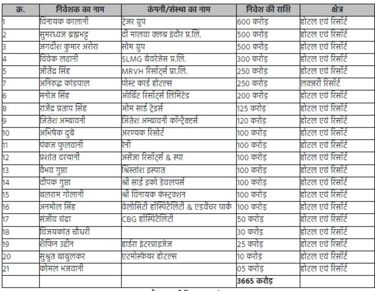 मुख्यमंत्री डॉ यादव ने दो बड़ी परियोजनाओं के लिए इंदौर ट्रेजर टाउन प्रा.लि. को लेटर ऑफ अवार्ड प्रदान किया। इन परियोजनाओं के माध्यम से प्रदेश में लगभग ₹386 करोड़ का निवेश होगा। पहली परियोजना विश्व धरोहर स्थल साँची के निकट, रायसेन जिले के ग्राम नीनोद में स्थापित की जाएगी। यहाँ 70.707 हेक्टेयर भूमि पर पर्यटन संबंधी गतिविधियों के विकास के लिए ₹246 करोड़ का निवेश किया जाएगा। दूसरी परियोजना खंडवा जिले में स्थित इंदिरा सागर जलाशय के सुरम्य नजरपुरा आइलैंड पर 17.57 हेक्टेयर भूमि पर ₹140 करोड़ की लागत से एक अद्वितीय रिसॉर्ट विकसित किया जाएगा।